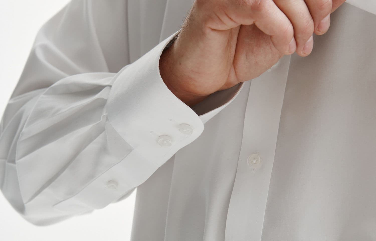 Высококлассная рубашка также определяется наличием складок на рукаве у манжеты — обычно их 2–3. Чем больше складок, тем аккуратнее выглядит рукав и комфортнее сгибать локоть. Плотность стежков на швах тоже важна. Чем больше стежков на сантиметр, тем дольше прослужат швы. На рубашках BLANCOR плотность составляет 6–7 стежков на см, в то время как на рубашках более низкого ценового сегмента — 4–5.